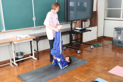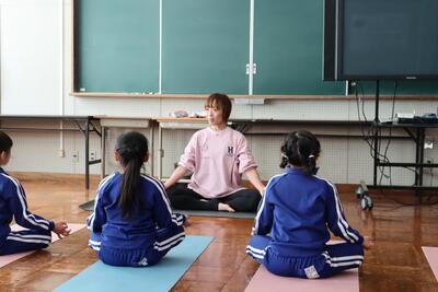 今年度最後のヨガ教室が行われました。今日はまとめということでヨガマットを敷いて本格的に行いました。難しいポーズや連続するポーズもありましたが、元気に楽しくヨガを行うことができました。遠藤春菜先生、楽しく体を動かすご指導ありがとうございました。