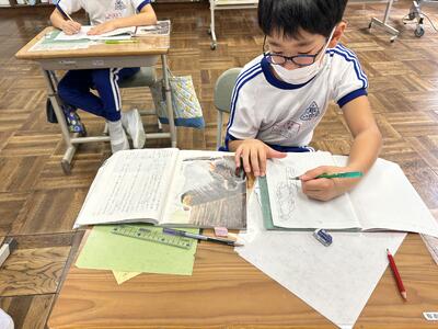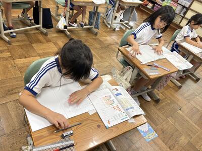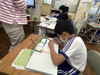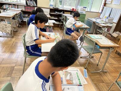 4年生は説明文の学習をしています。今日は自分の調べたことを発表するための原稿を作りました。