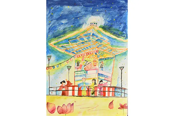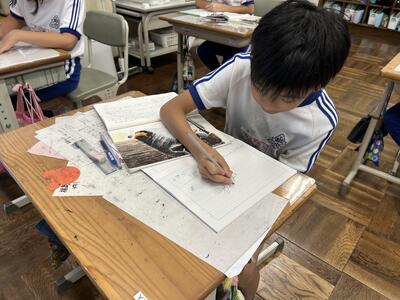 5年生は宿泊学習の思い出を描きました。細かい描写がとても素敵です。