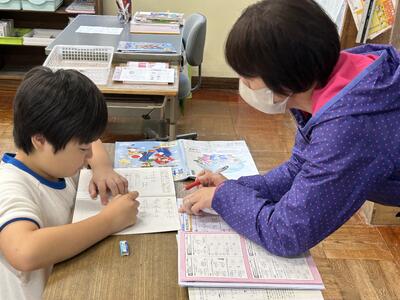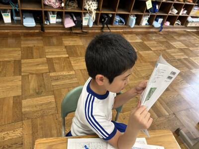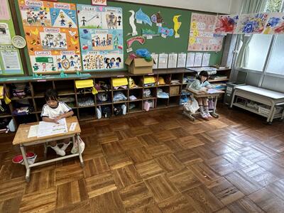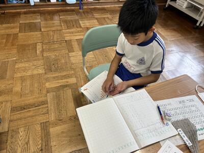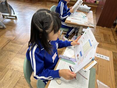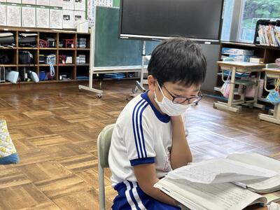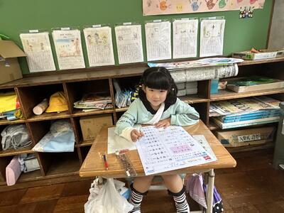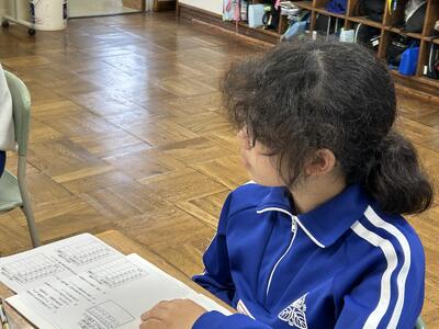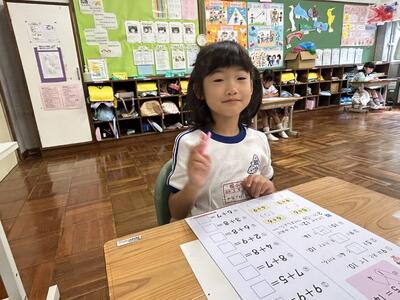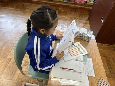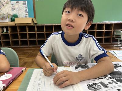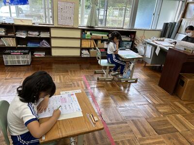 1年生は単元テストでした。今日のテストの内容は足し算。みんな頑張っていました。