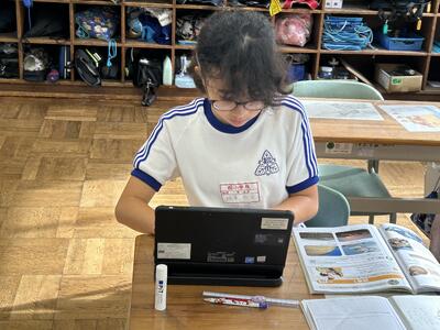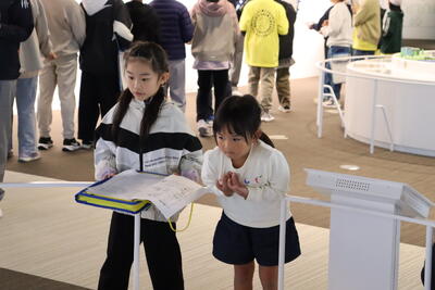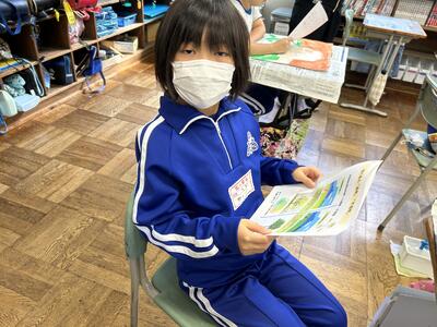 4年女子 ・私はコミュタン福島見学学習で心に残っていることが2つあります。1つ目は放射性物質のことです。地震の時の話はお母さんから聞いたことがあったのですが、放射性物質は知らないことがたくさんありました。コミュタンではいろいろ知ることができたし、放射性物質の形も見られて、とてもおもしろかったです。そしてびっくりしました。2つ目はSDGs研修です。海のゴミや貧困について学びました。私と同じ年で学校へ行けずに働いている子どもがいることにびっくりしました。 |