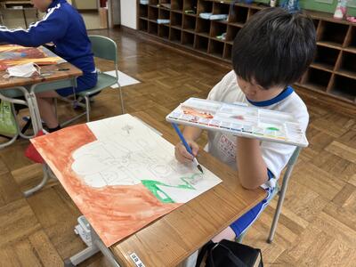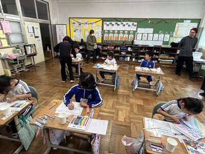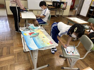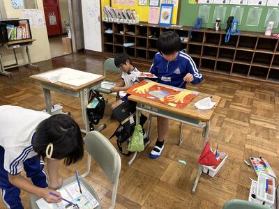 1年生の図工の作品も完成です。大変よく描けています。