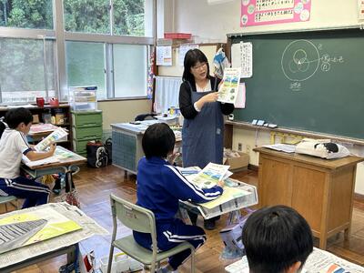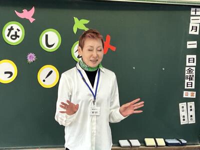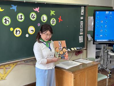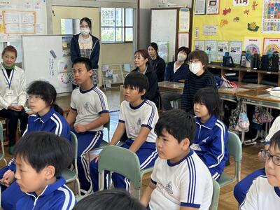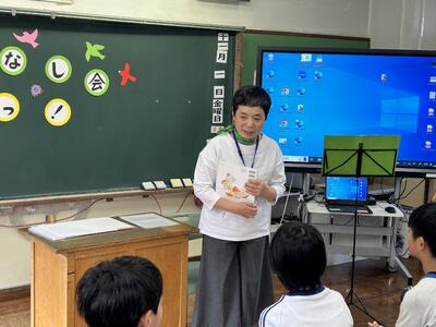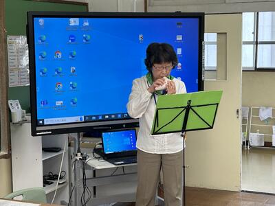 5・6年生は「おはなし会 わっ」の皆さんの読み聞かせも体験しました。感情が入った読みで、すぐに本の世界に引き込まれました。途中でオカリナの演奏もあり、子どもたちは「エーデルワイス」と「大きな古時計」をオカリナの伴奏で歌いました。
