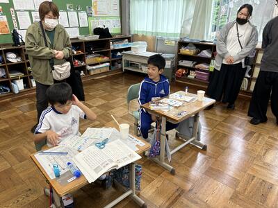 5・6年生はカフェみっとんで調理実習を行いました。店長さんがアレルギーへの配慮から小麦を使っていない醤油を探したり、おいしくできるように今回の実習のために1週間も試行錯誤したメニューを教えていただきました。自分たちで調理したものはやっぱりおいしかったようです。カフェみっとん様、ありがとうございました。