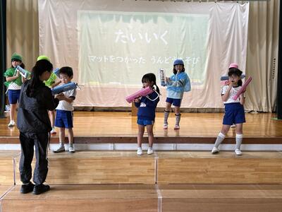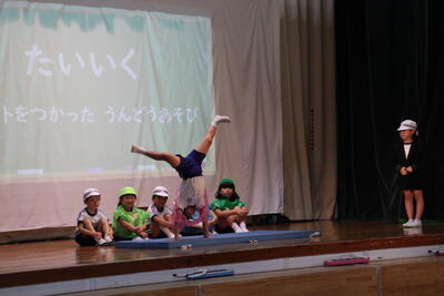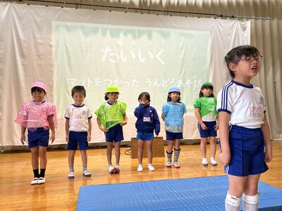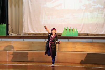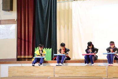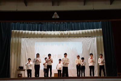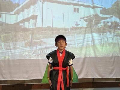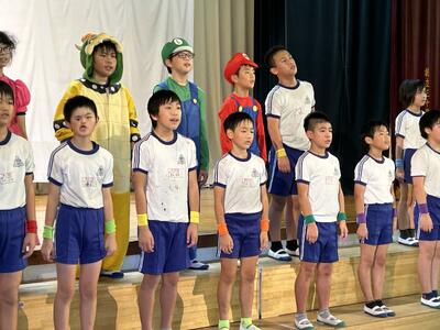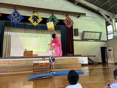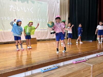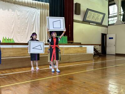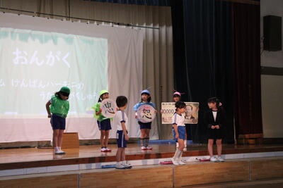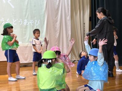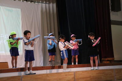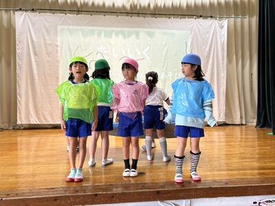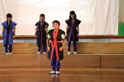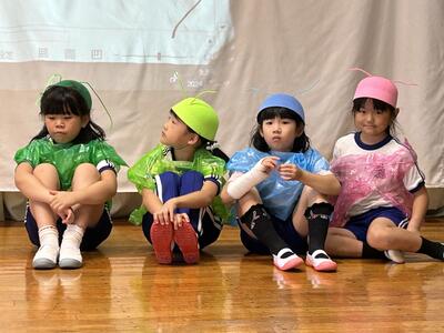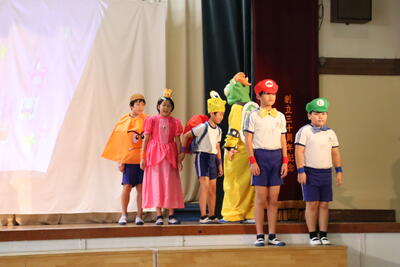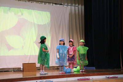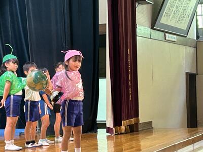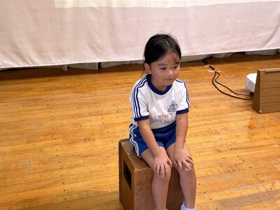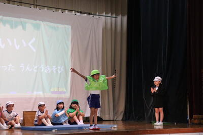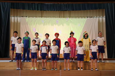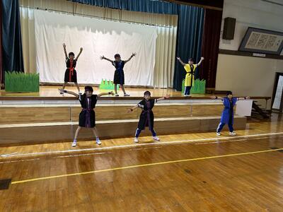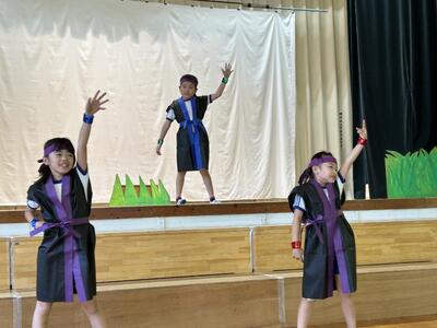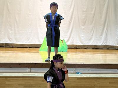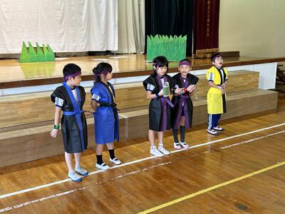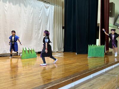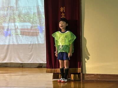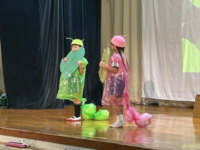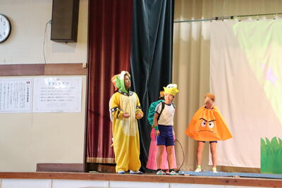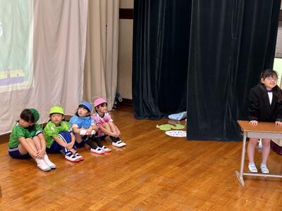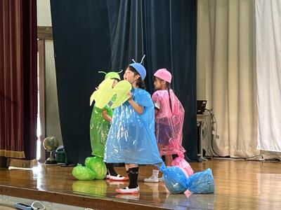 体育館では1年生が学習発表会の練習をしていました。青虫たちが体操をしたり、鍵盤ハーモニカを演奏したり、とても楽しそうでした。セリフを大きな声で、しっかり言えた1年生。素晴らしいです。
