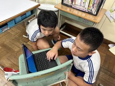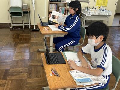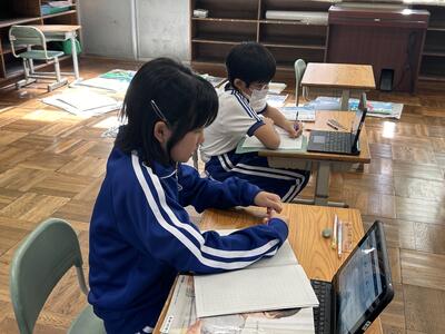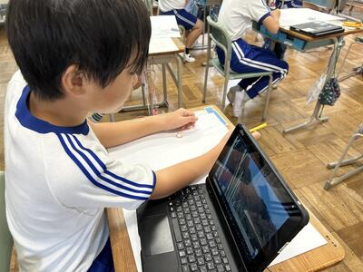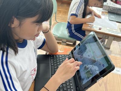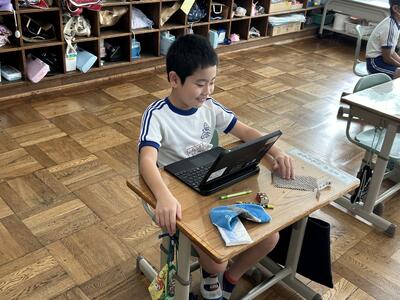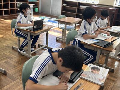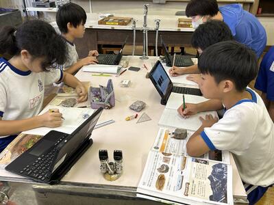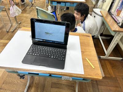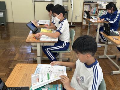 4年生も理科を頑張りました。タブレット端末を使って、調べ学習も行いました。