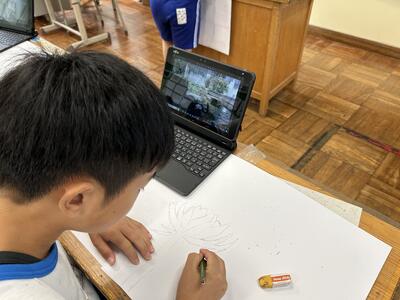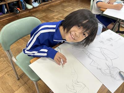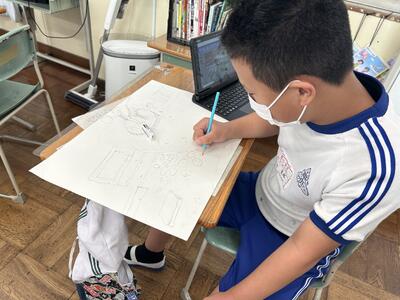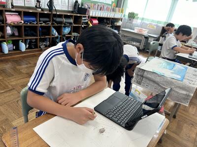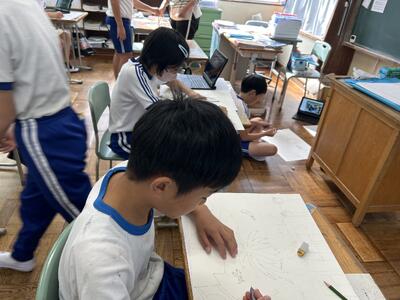 5・6年生はタブレット端末の画像を見ながら、スケッチをしていました。自分で撮った写真を見ながらの作業です。いつもより意欲的にできたようでした。