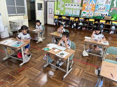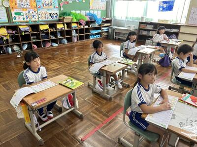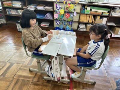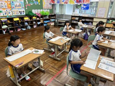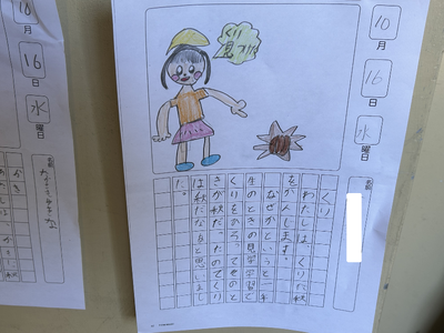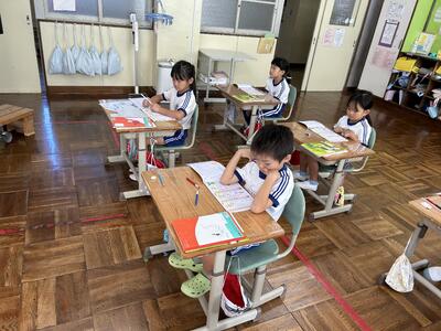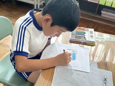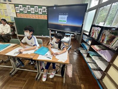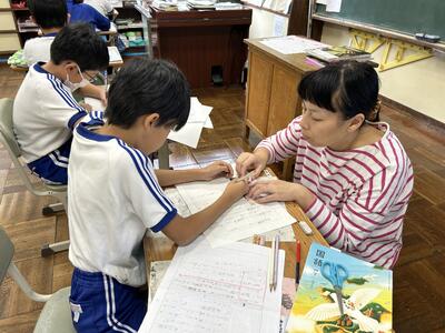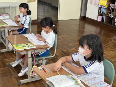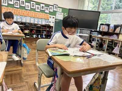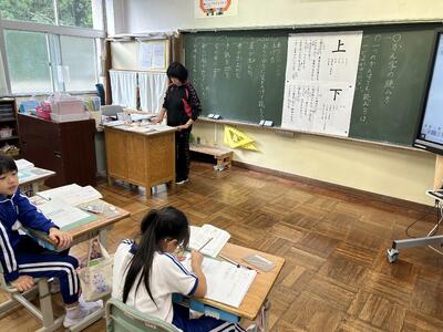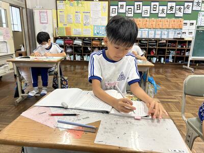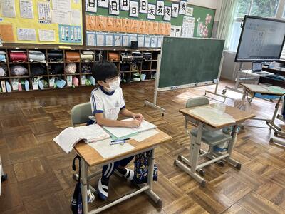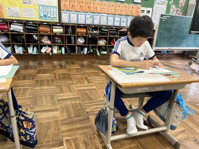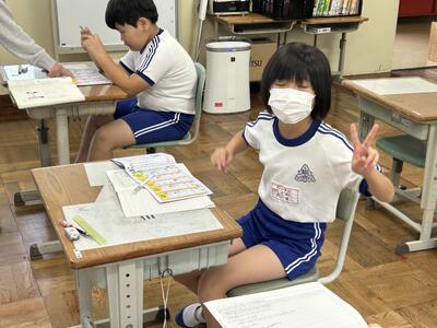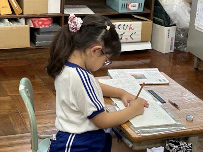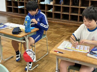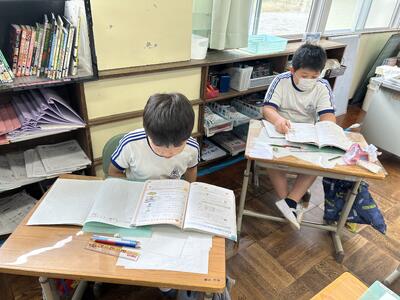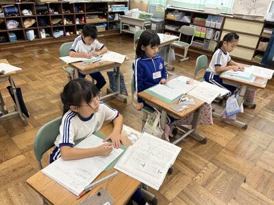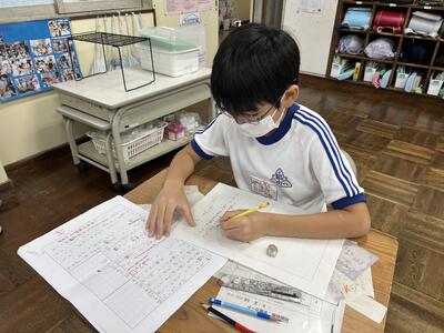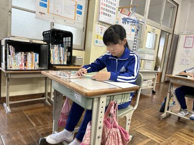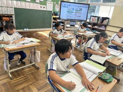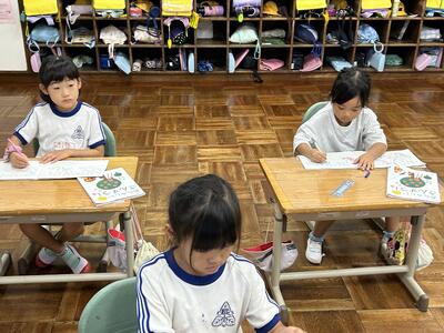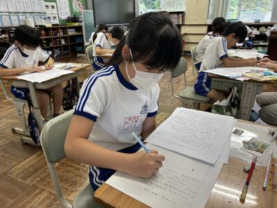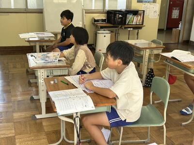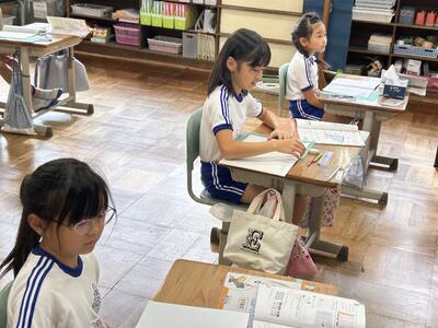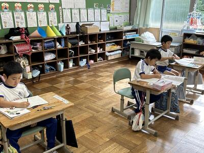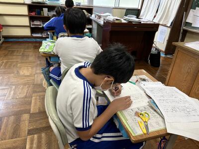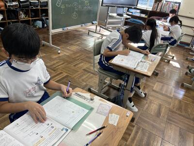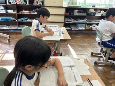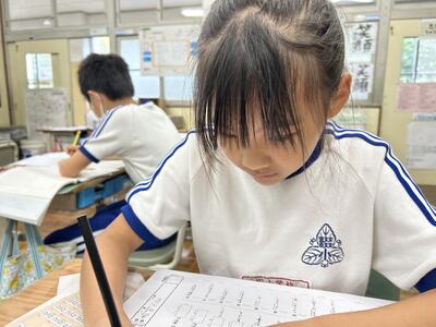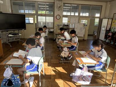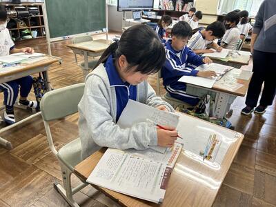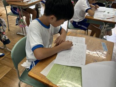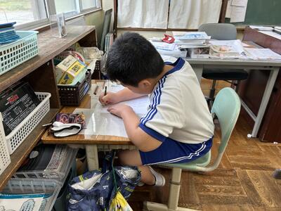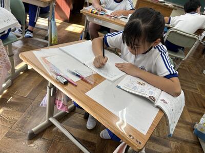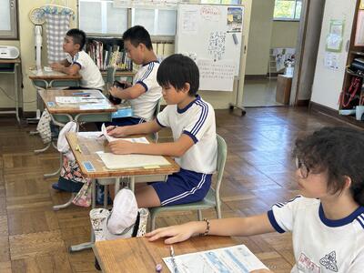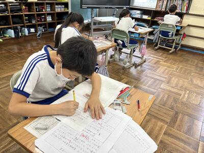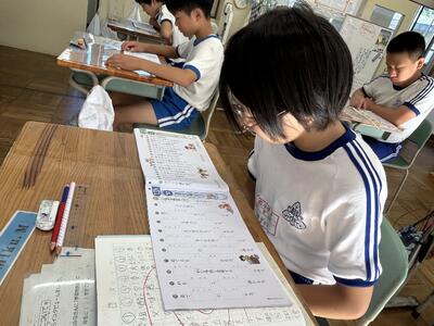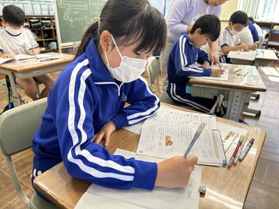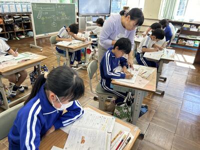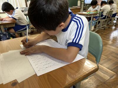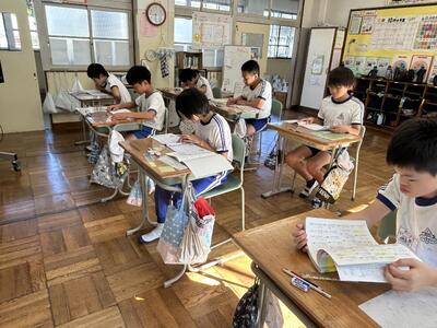 3・4年生は国語の学習を頑張りました。3年生は漢字のテスト、4年生は作文の清書でした。