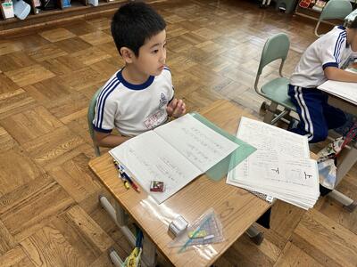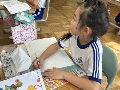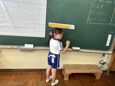 1年生は算数を頑張りました。数字を分けて簡単に足し算する方法を学びました。