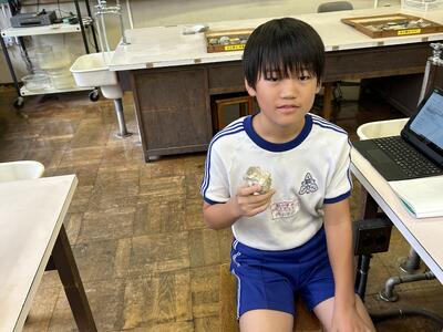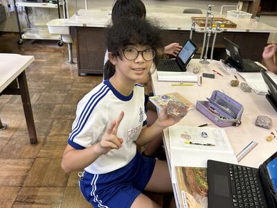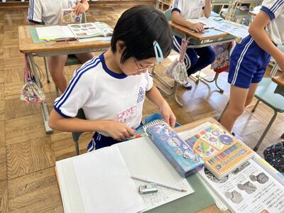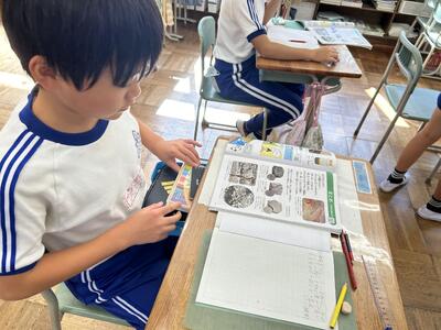 6年生は理科で岩石の学習をしています。今日は実際に石を見ながら、スケッチをしました。