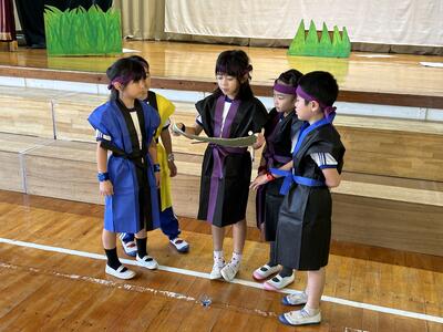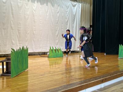 2年生は劇の練習を行いました。力を合わせて頑張りました。