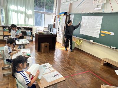 4年生は国語の授業で「ごんぎつね」を学習しています。今日は文章の中に出てくる擬音語について詳しく学習しました。たくさんの擬音語を見つけることができました。