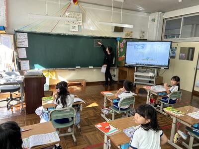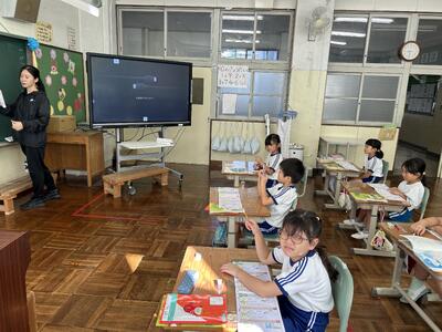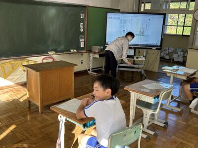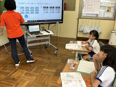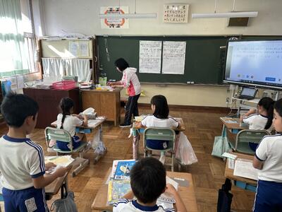 2年生はタブレット端末を使って、漢字の学習をしました。上手に使いこなしています。