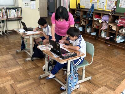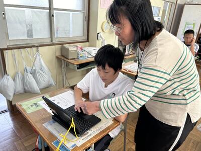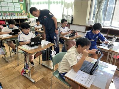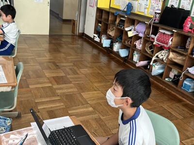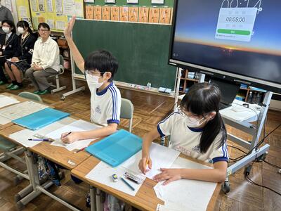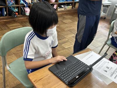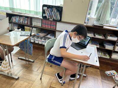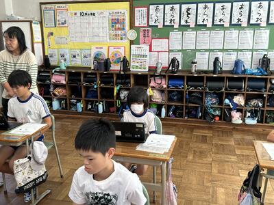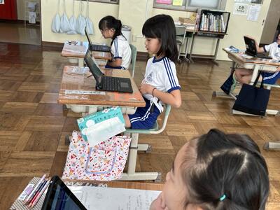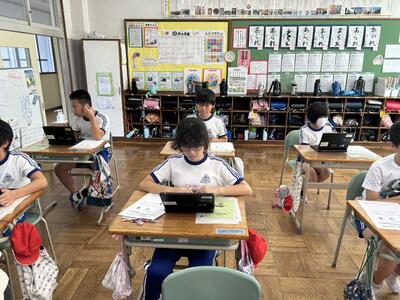 本日、4・5・6年生は、CBT化対応試行を行いました。今後、ますますタブレット端末での学習がやりやすくなるようにするための試みです。今回の施行では、国語と算数の問題を解きました。上手にタブレット端末を操作しながら、解答することができました。