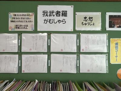 6年生の道徳コーナーです。道徳の授業で考えたことを、みんなで共有しています。