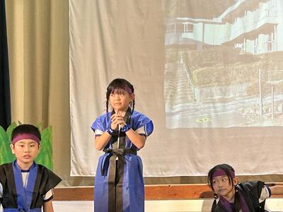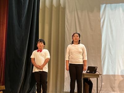 1年生と2年生の学習発表会の練習の様子をのぞいてきました。大きな声で元気よく練習に取り組んでいました。作品の完成度は高かったです。本番も期待しています。