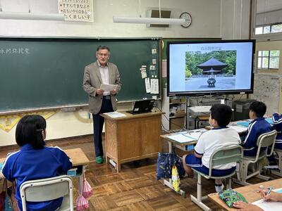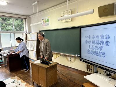 3・4年生は白水阿弥陀堂について、いわき市教育文化事業団の 中山雅弘 様から詳しく教えていただきました。白水阿弥陀堂の屋根は板を重ねて作られているなどいろいろと新しい知識を得ることができました。