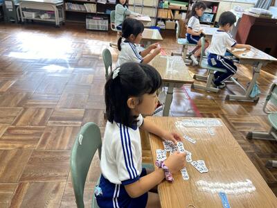 1年生は足し算カードを使って、足し算が速くできるように練習しました。目指せ!足し算名人!