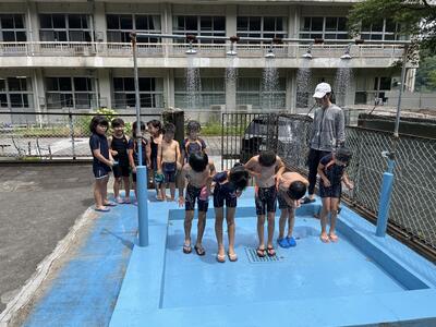 今日も全学年がプールに入りました。やっぱりプールの学習は楽しいようです。2年生女子の話をします。6月中頃からプールでの授業を行っているわけですが、ものすごい進歩が見られました。6月は顔を水につけることも嫌がっていたのですが、彼女は今日の授業でプールの横である12.5mを泳ぎ切りました。彼女は毎時間、努力を続けてきました。その努力が実ったのです。泳ぎ切ったときの彼女の笑顔は輝いていました。子どもたちの進歩は大人の想像以上のものがあります。素晴らしい光景でした。一緒にプールに入っていた私も感動してしまいました。そして泳ぎ切った後の、仲間からの賞賛の拍手。これにも感動しました。綴の絆の強さを感じました。本当におめでとう。よく頑張りましたね。