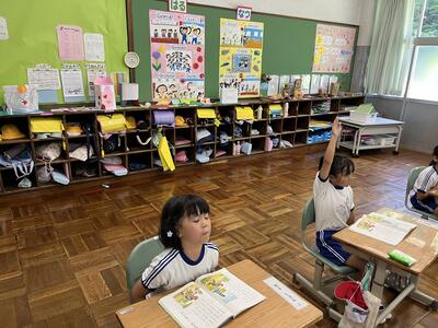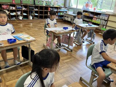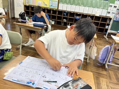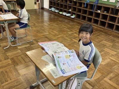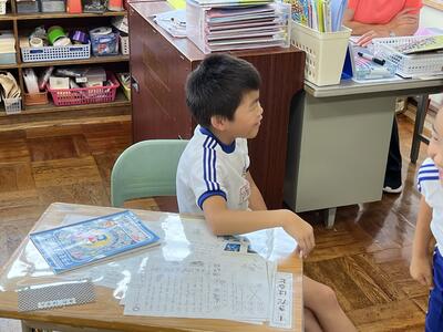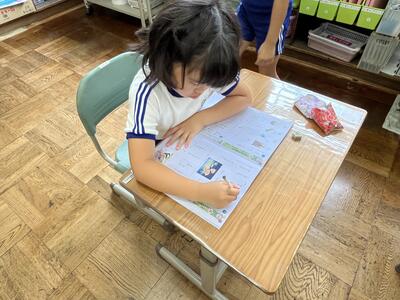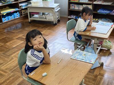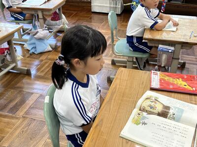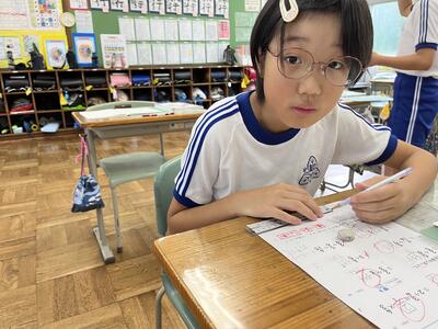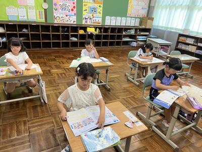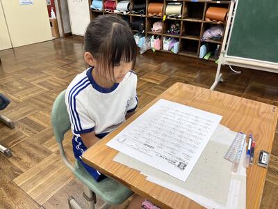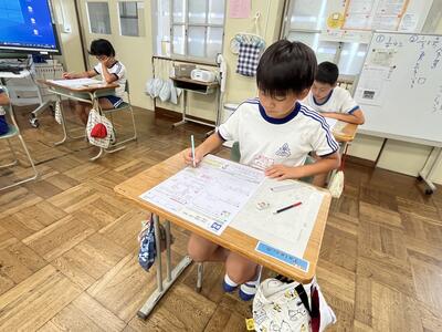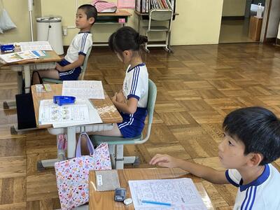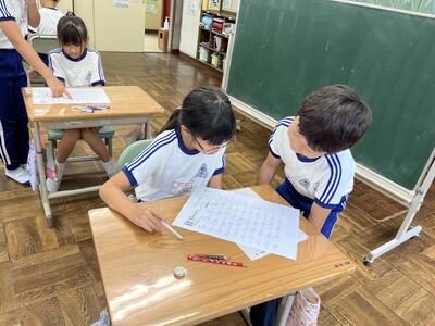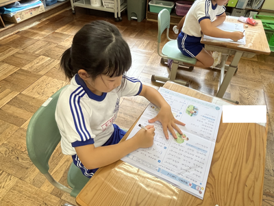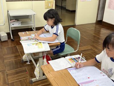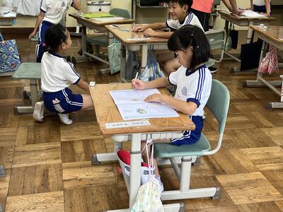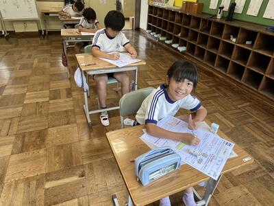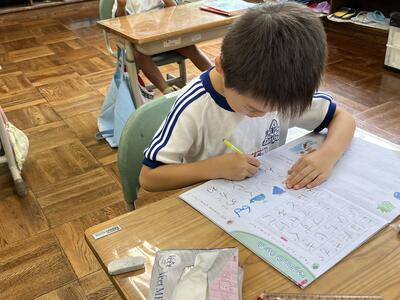 1年生はひらがなの復習をしました。本当に上手に文字が書けるようになりましたね。
