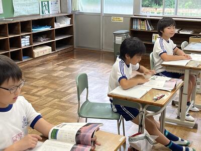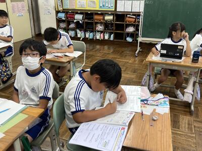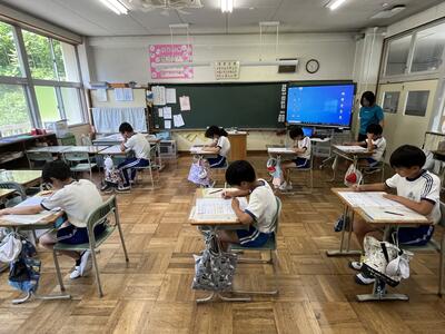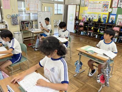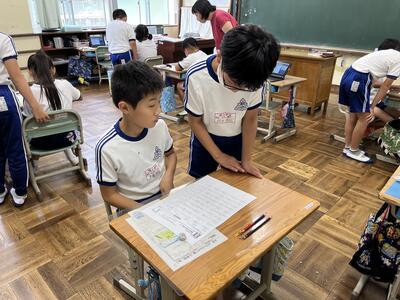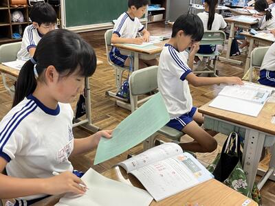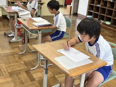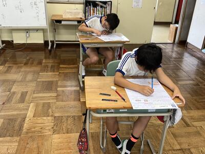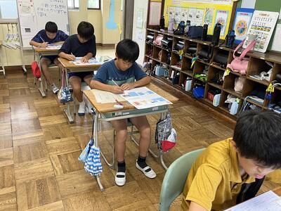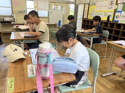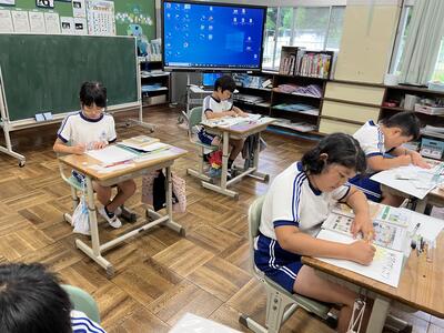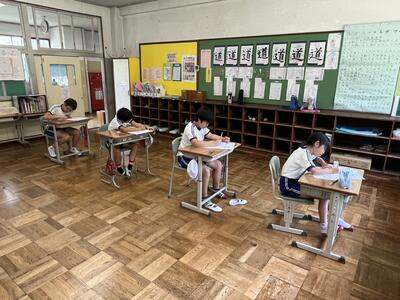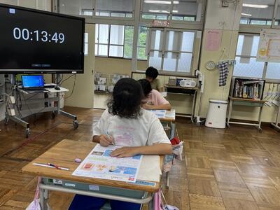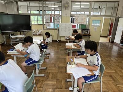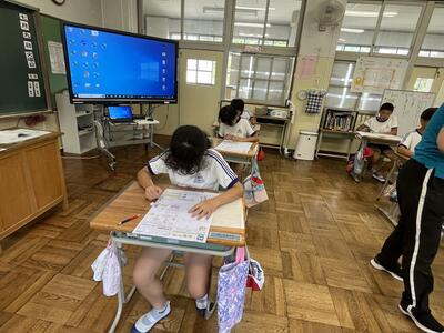 6年生は理科の1学期の復習テストに取り組みました。間違えたところはもう一度確認して知識を確実なものにしてください。