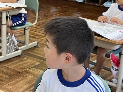 5年生は夏休みの自由研究についての説明を受けました。どんな研究を行うのかを考えることができました。