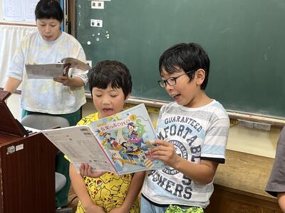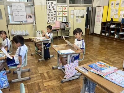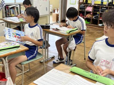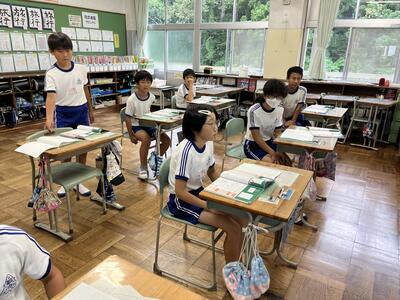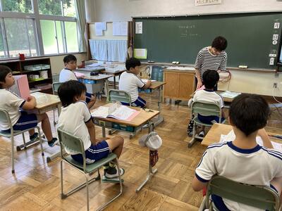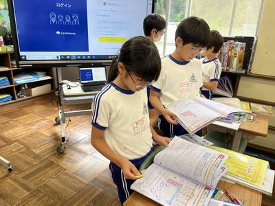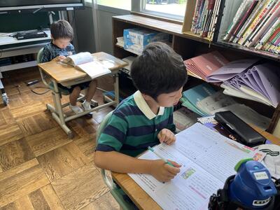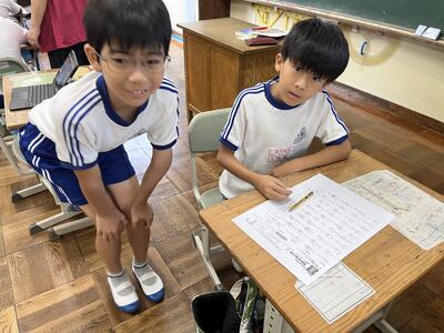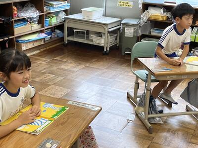 1・2年生は合同で授業を行いました。人数が増えて、いつもより楽しく学習しました。