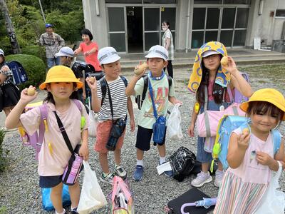 本日、学校の農園で収穫したジャガイモを児童一人一人に持たせました。おうちで美味しく調理して、お召し上がりください。