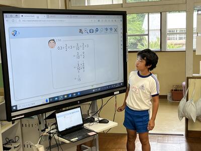 6年生は分数の問題をたくさん解きました。先生に教えてもらったり、友だちに教えてもらったり、和やかな雰囲気の中、頑張りました。