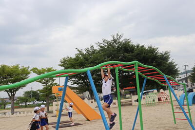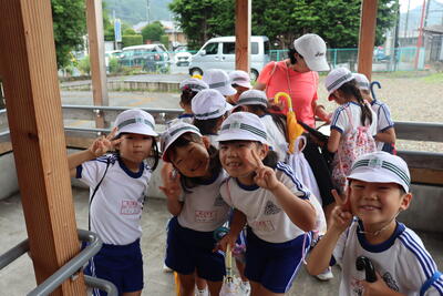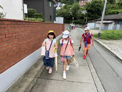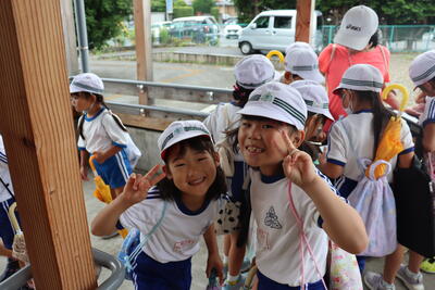 今日は1・2年合同で町たんけんに出かけました。最後は仲良く馬場公園で遊びました。楽しかったようです。