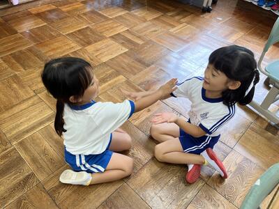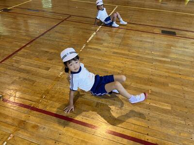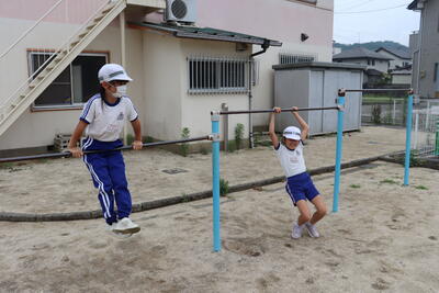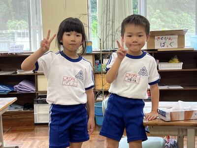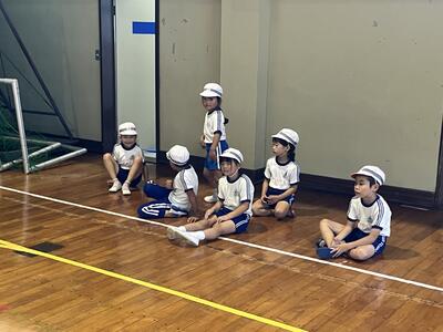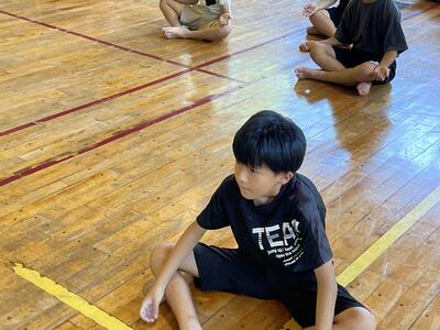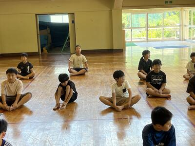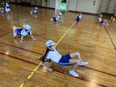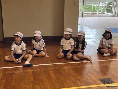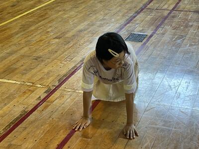 今日は雨降り。1・2年生は体育館で体力づくり。汗を流しながら、頑張りました。速く終わった児童は「頑張れ!」と仲間に声をかけていました。いい光景でした。