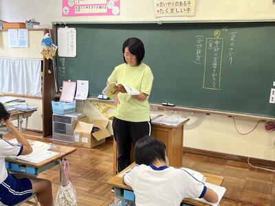5年生は枕草子の夏の部分の暗記に取り組みました。有名な古典を暗記しようと頑張っていました