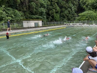 そして今日は5・6年生の水泳記録会がありました。自己ベストを目指して、みんな頑張りました。