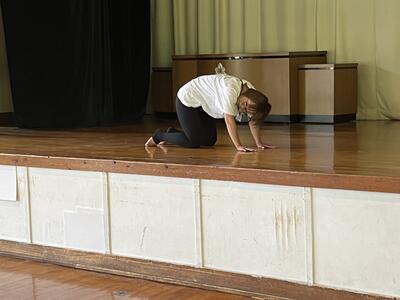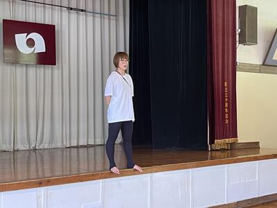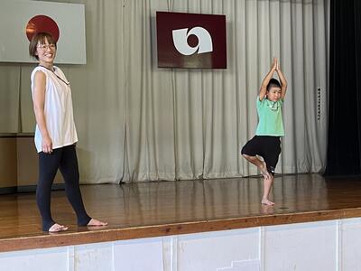 学習会の最後はヨガを行いました。遠藤先生は普段、ヨガの教室で教えられている先生です。ヨガのあいさつの仕方や猫のポーズ、木のポーズなどを教えていただきました。