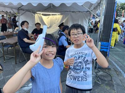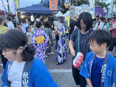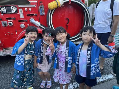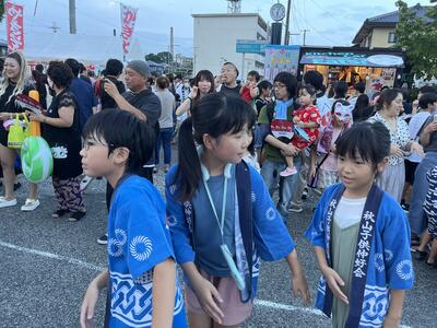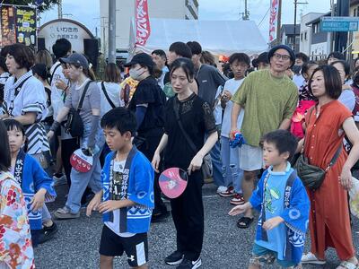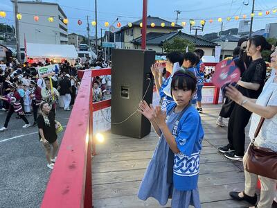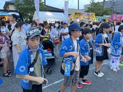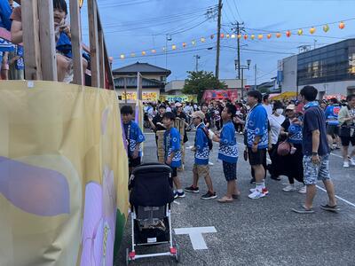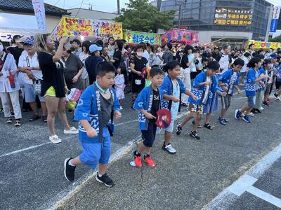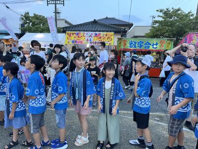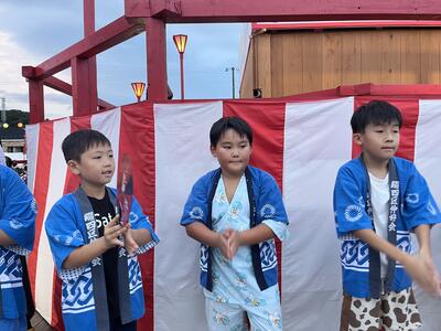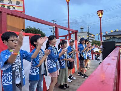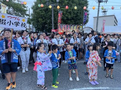 ネットニュースで回転櫓の盆踊りが放映されていました。綴小の子どもたちも映っています。