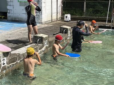 5・6年生はプールに入りました。泳ぎも上達しました。