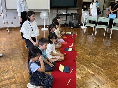 1年生と5年生は茶道体験を行いました。茶道の先生方のおかげで音楽室が茶室になりました。保護者の方々にも点てたお茶を振る舞いました。礼の作法等、学びがたくさんあった授業でした。