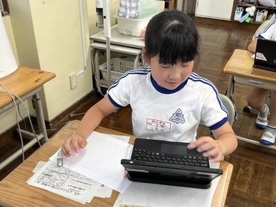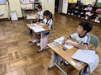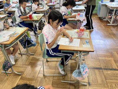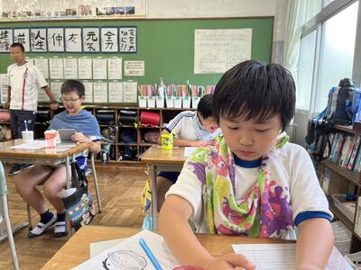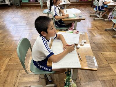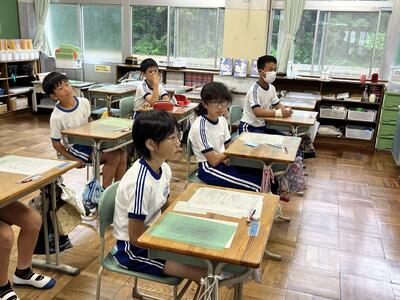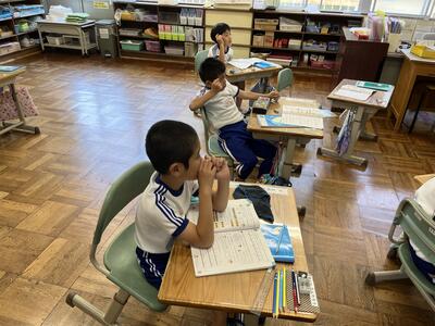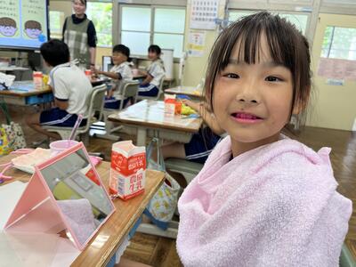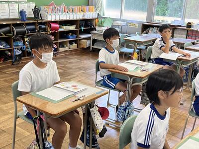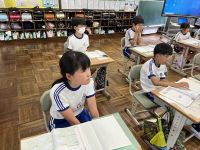 綴の子どもたち雨にも負けず、風にも、暑さにも負けず、今日も一日頑張りました。今日の暑さの中、保健の先生の呼びかけを守り、しっかりと水分補給することができました。水筒の飲み物がなくなってしまったときには、保健の先生に伝え、水筒に氷と水を補給してもらうように指導しています。今日も保健室に冷たい水をもらいに来る児童がたくさんいました。