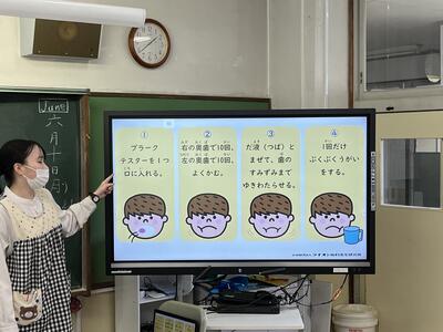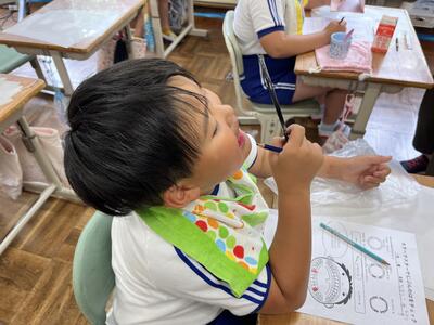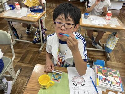 歯と口の健康週間に合わせて、本日1~4年生を対象に歯みがきの指導を行いました。カラーテスターを使って、磨き残しがどのぐらいあるのかを確認させ、正しい歯みがきの方法を指導しました。むし歯ゼロを目指して、しっかりとした歯みがきの方法と習慣を身に付けていきましょう。