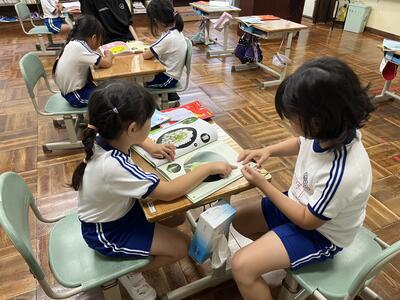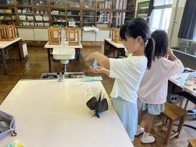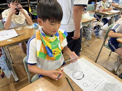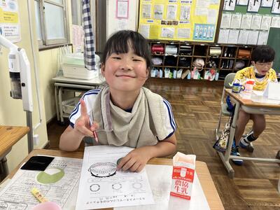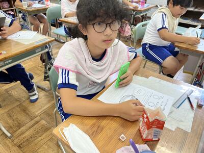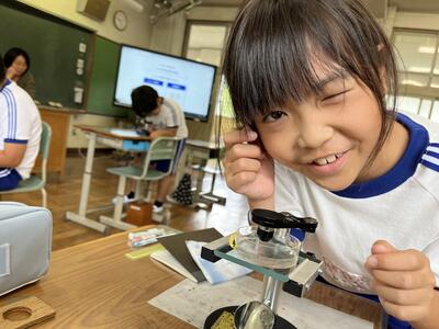 5年生は理科でメダカの卵の観察をしました。卵の中に心臓や目があるのを顕微鏡を使って確認しました。
