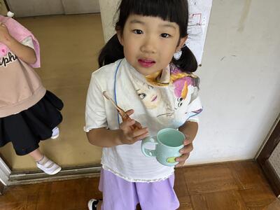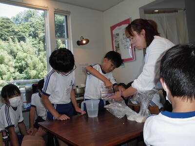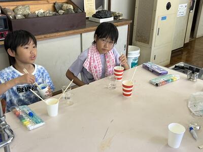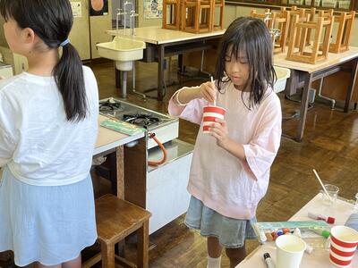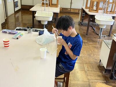 文化クラブは今日はスライム作りに挑戦しました。科学者のようです。