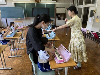 1年生では、鍵盤ハーモニカ講習会が行われました。これから小学校でずっと演奏する鍵盤ハーモニカの基礎を学ぶことができました。たくさん練習して上手になりましょう。