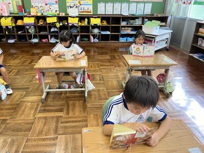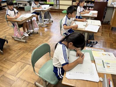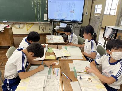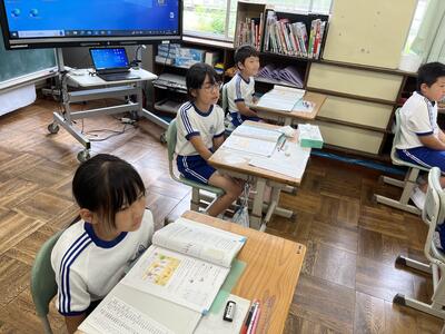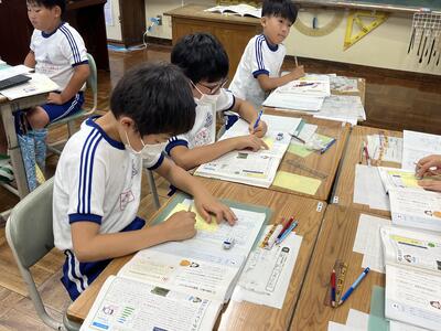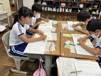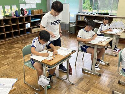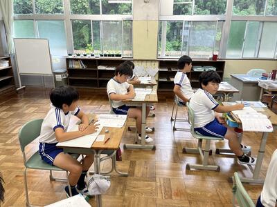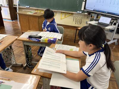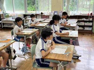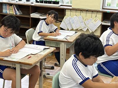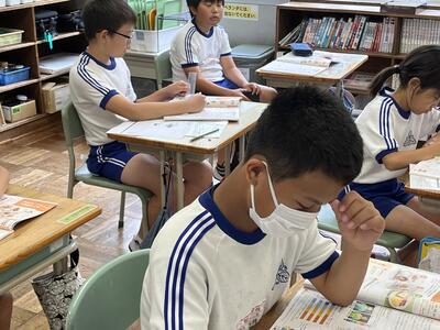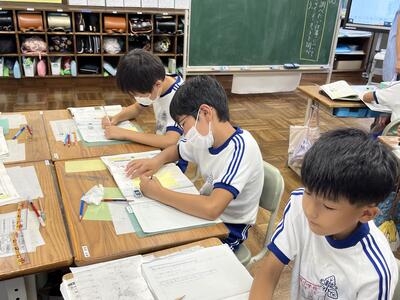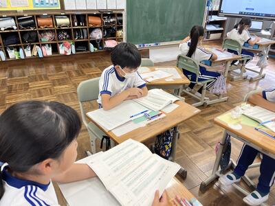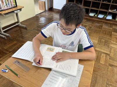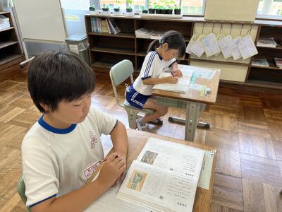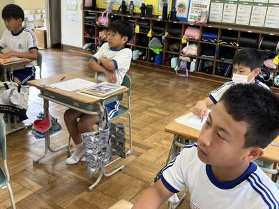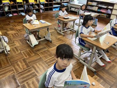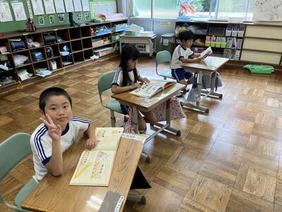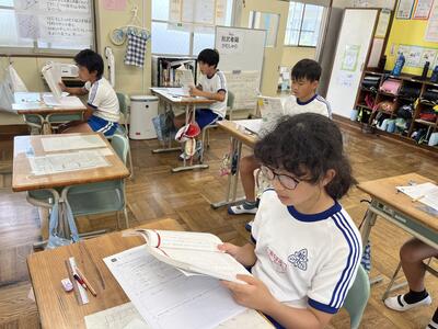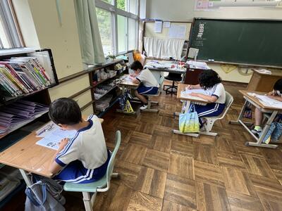 今日の朝自習の様子です。1・2年生は読書、3・4年生は国語や算数の問題に取り組みました。集中して取り組んでいたため、教室はシーンとしていました。すごい集中力です。