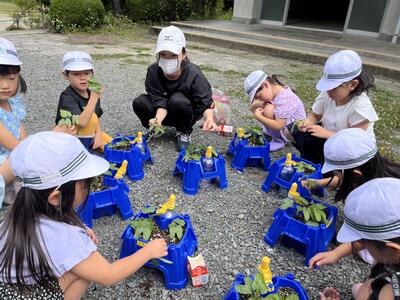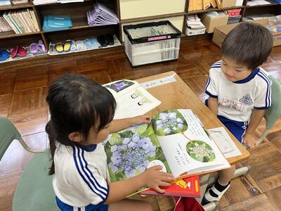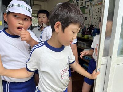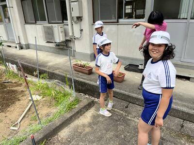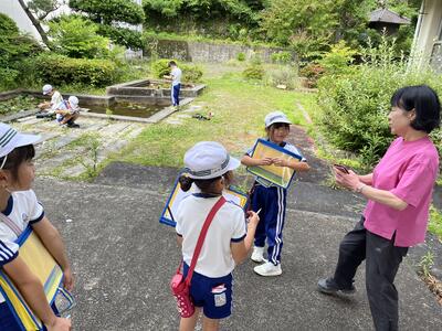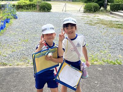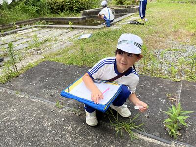 かわいい声が聞こえたので、外へ出てみると2年生が植物の観察をしていました。綴は緑が豊かです。そして着々と夏に向かっていることを感じました。