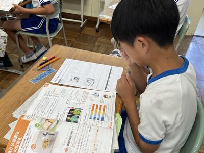 5・6年生は家庭科で「食」について学習しました。ペアそして個人で真剣に考えている姿がすてきです。