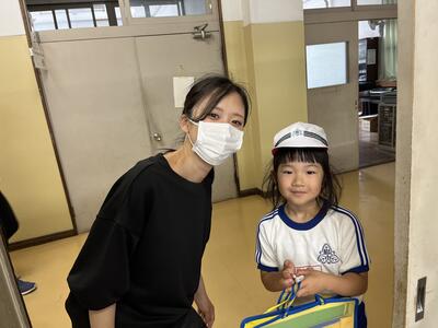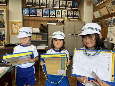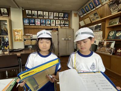 1年生は学校探検も行いました。校長室にも訪問し、インタビューをしていきました。手作りの名刺もいただきました。