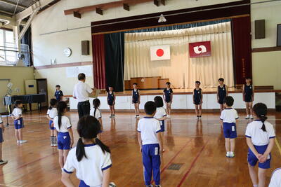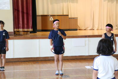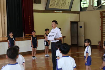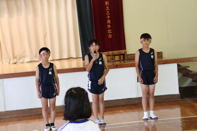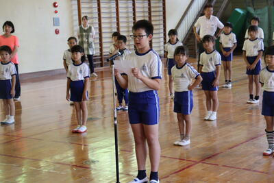 プール開きの司会進行は5年生です。てきぱきと上手に進行しました。そして各学年の代表から目標が発表されました。目標達成に向けて頑張りましょう。