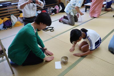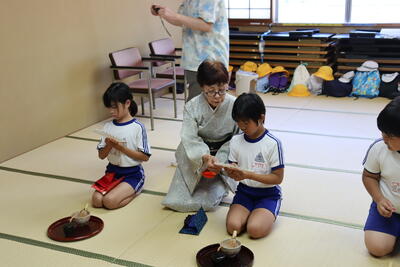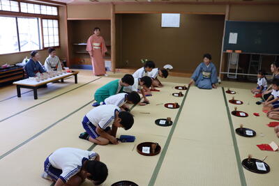 また1年生と5年生は内郷公民館で、茶道体験を行いました。初めて体験する児童が多かったのですが、裏千家の渡辺祥子先生をはじめとする4名の先生方に茶道の作法等を教えていただきました。本当にありがとございました。次の授業参観で1年生と5年生は、また渡辺祥子先生にご指導いただき、保護者の皆様にお茶を召し上がっていただき予定です。