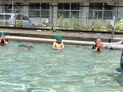 2024年6月20日 18時50分青空が広がり、絶好のプール日和。子どもたちはプールでの学習を満喫しました。