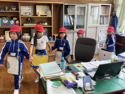 さて今日はかわいい1年生が学校探検を行いました。校長室も訪れ、輝く笑顔を見せてくれました。